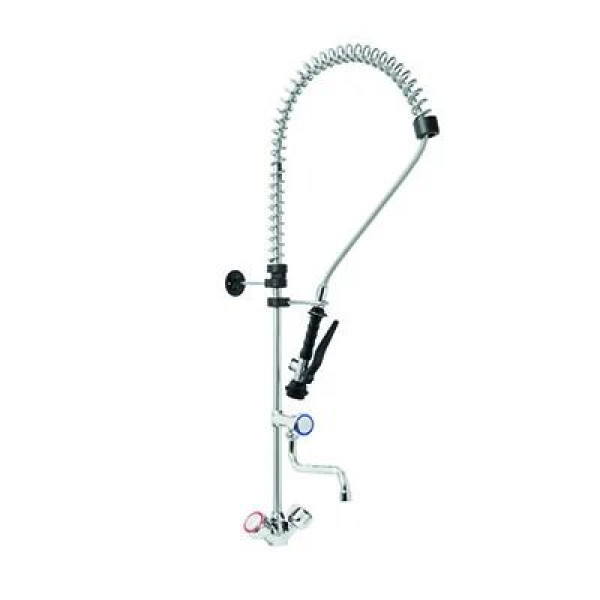Смеситель для предварительного ополаскивания с отливом посередине и душевой насадкой. Время потока –12-18 секунд. Размеры и комплектацию смотреть тут: Технический лист.