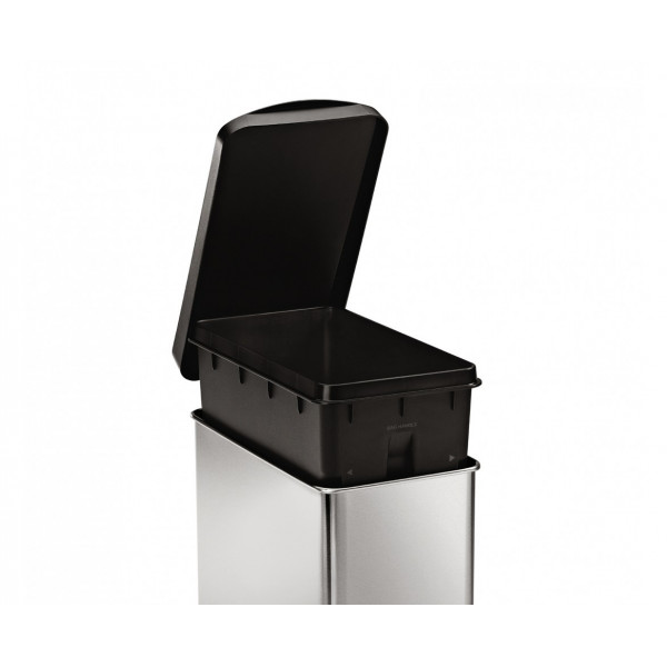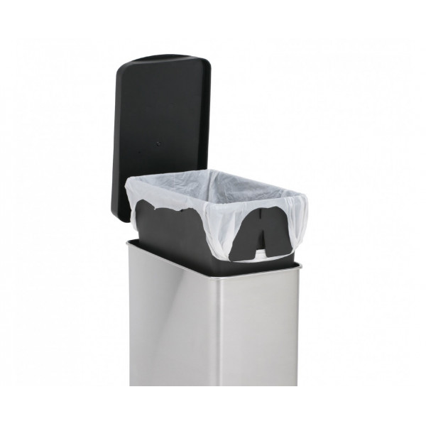 Узкая урна изготовлена из нержавеющей сатиновой стали. Идеальна для размещения в ванной комнате или под столом в офисе. Она имеет прочную стальную педаль, которая прослужит вам долгие годы. Можно использовать обычные кульки с ручками , а можно наши специальные мусорные пакеты. Подходит мешок с кодом R