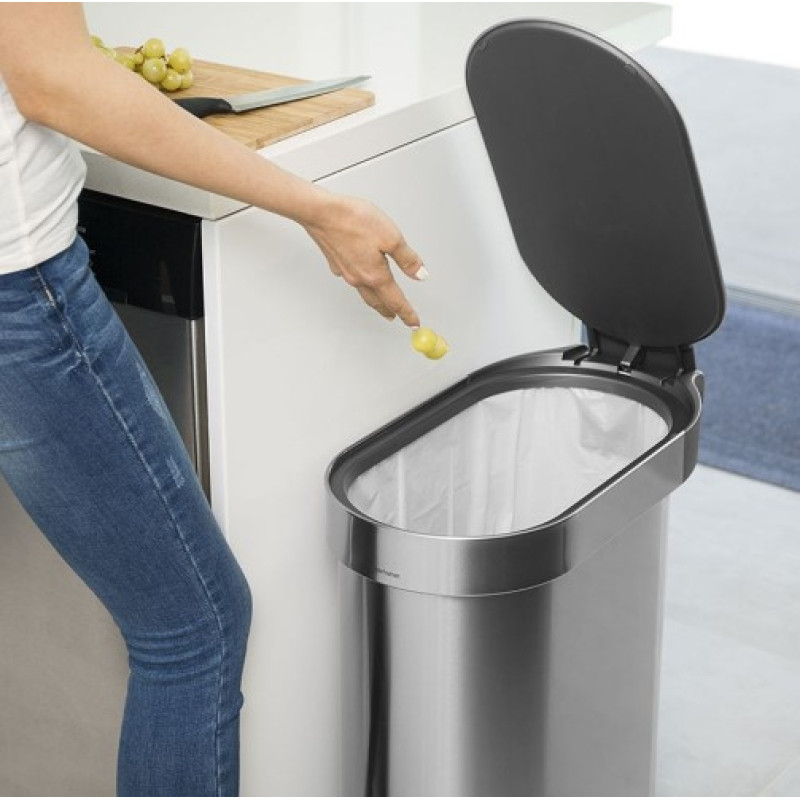 Компактная урна из нержавеющей стали с сатиновой отделкой и мощной педалью разработана специально для узких мест. Ободок под крышкой поднимается для легкой и быстрой смены мусорного пакета, а затем опускается поверх мешка, чтобы плотно его удерживать и скрывать от глаз. Запатентованная технология крышки Shox обеспечивает плавное и бесшумное закрытие урны. Идеально подходят мешки на завязках с кодом N.