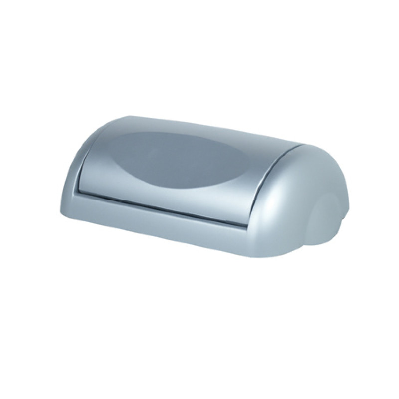 Крышка поворотная предназначена для установки на урну арт. 742 в тех случаях, когда необходимо скрыть содержимое ведра, открывается легким нажатием руки. Выполнена из ударопрочного пластика? покрытого серебристой краской.