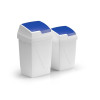 Урна для мусора белого цвета оснащена "самовозвращающейся" поворотной крышкой синего цвета, которая открывается с помощью нажатия руки. Для удобства утилизации мусора верхняя часть урны сделана съёмной. Разноцветные крышки облегчают сортировку мусора.