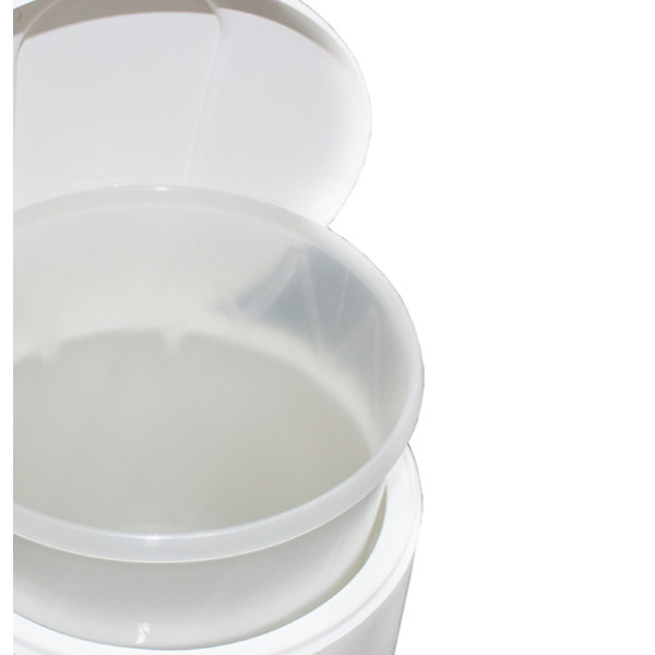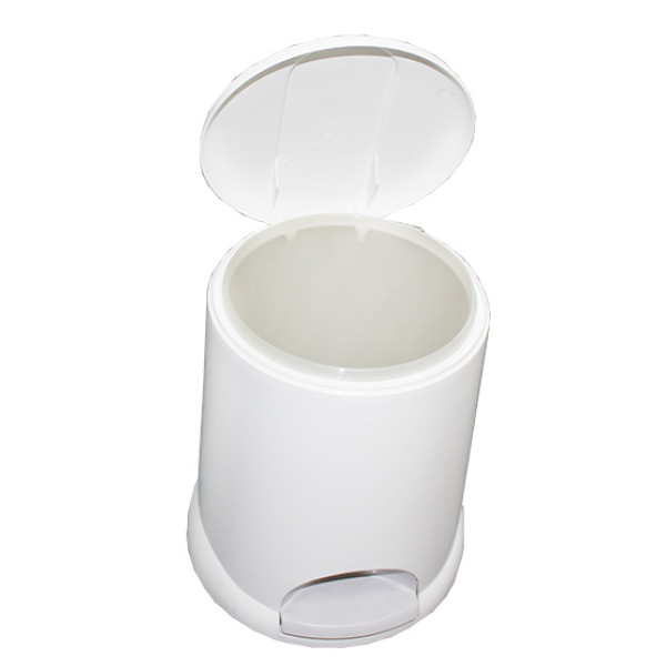 Изготовлена из ударопрочного пластика белого цвета. Оснащена плавно работающим педальным механизмом, который обеспечивает удобное, безопасное и гигиеничное пользование данным оборудованием. Есть внутреннее пластиковое ведерко.